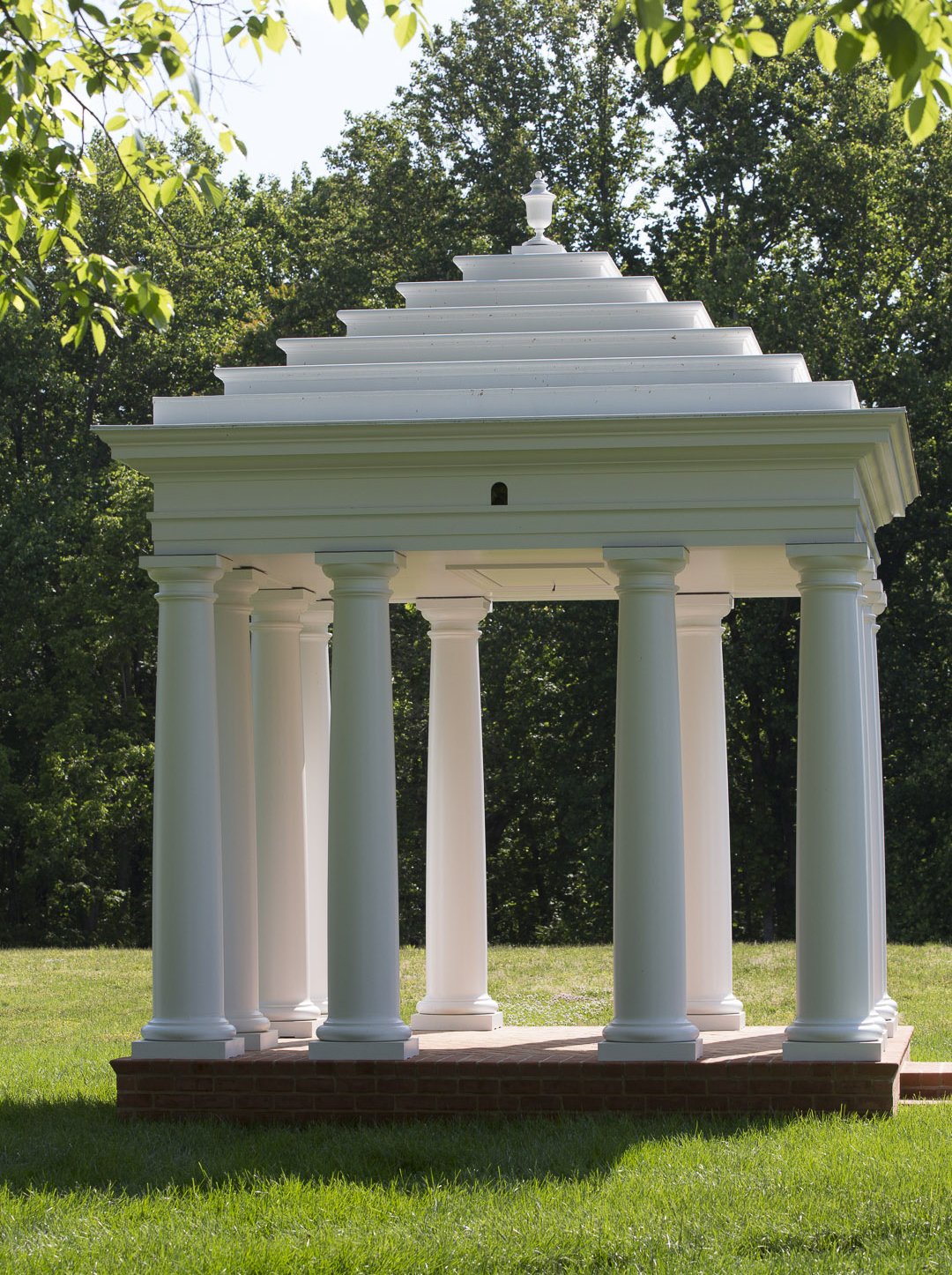Alexander Nicholson had the pleasure of bringing Jefferson’s dovecote to fruition at Rose Hill Estate in Caroline County, Virginia, with the help of landscape architect William Reiley and millworkers at Gaston & Wyatt. After a full restoration of the historic house was completed, the owner wanted to turn his attention to his gardens and grounds. The dovecote is the crown jewel of the landscape.